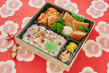 あっさりとした旬食材を上品に盛り込みました。寿ぎをイメージしたご飯と和風惣菜の組み合わせをお楽しみください。
