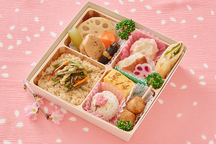 春の宴におだやかな華やぎを添えるお弁当。かわいらしい春を九ツ枡一つ一つに彩り美しく盛り込みました。