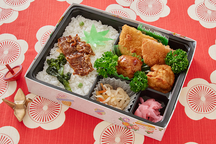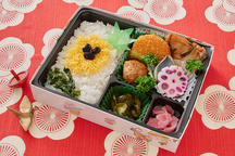 あっさりとした旬食材を上品に盛り込みました。寿ぎをイメージしたご飯と和風惣菜の組み合わせをお楽しみください。