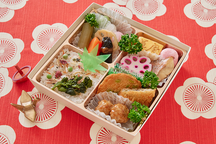爽やかな初春をイメージした清楚なお弁当。あっさりした和風惣菜を彩り美しく盛り込みました。