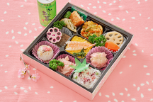 春の宴におだやかな華やぎを添えるお弁当。かわいらしい春を九ツ枡一つ一つに彩り美しく盛り込みました。