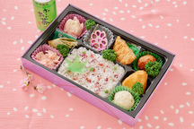 春たけなわの穏やかな風景をイメージしました。あっさりとした梅ゆかりをトッピングしたご飯と和洋中のバラエティ豊かな惣菜の組み合わせが楽しいお弁当。