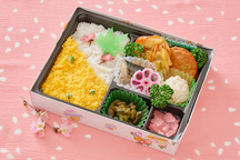 春の香りいっぱいの心浮き立つお弁当。あっさりとした和風惣菜を優しい色彩りで盛り込みました。