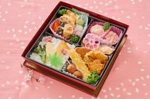 春の宴におだやかな華やぎを添えるお弁当。かわいらしい春を九ツ枡一つ一つに彩り美しく盛り込みました。