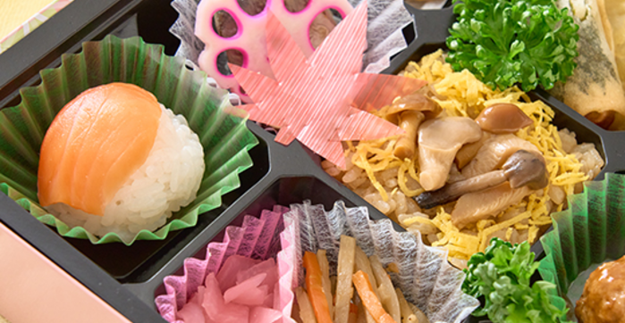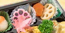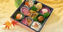 草庵の紅楓 (そうあんのべにかえで) 1,000円(税込) 注文数 個 カートへ カートに入れる やさしく輝く月が秋の野山を照らす景色をイメージしました。九ツ枡それぞれに秋の味覚を盛り込んだお弁当。 内容 茶飯・錦糸玉子・きのこミックス・白飯・紅あずま・グリンピース・手まり 鮭・人参煮・蓮根煮・さつまいも天ぷら・大葉春巻き・ピンク焼売・肉団子・鯖塩焼き・花蓮根・金平ごぼう・桜漬・お茶(缶)