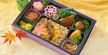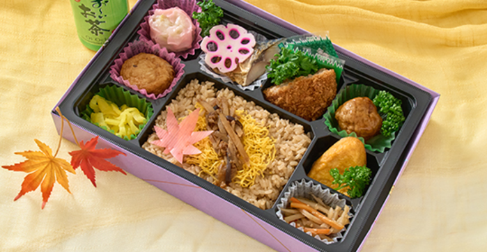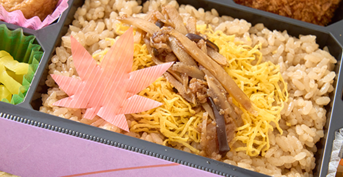 錦山 (にしきやま) 1,000円(税込) 注文数 個 カートへ カートに入れる この秋の人気惣菜をボリュームいっぱいに盛り込みました。食欲の秋!秋の風情と満腹感を味わえるお弁当。 内容 茶飯・錦糸玉子・ささがき牛蒡の甘辛煮・たこ八・ピンク焼売・鯖塩焼き・花蓮根・ジューシーメンチ・肉団子・プレーンオムレツ・金平ごぼう・沢庵・お茶(缶)