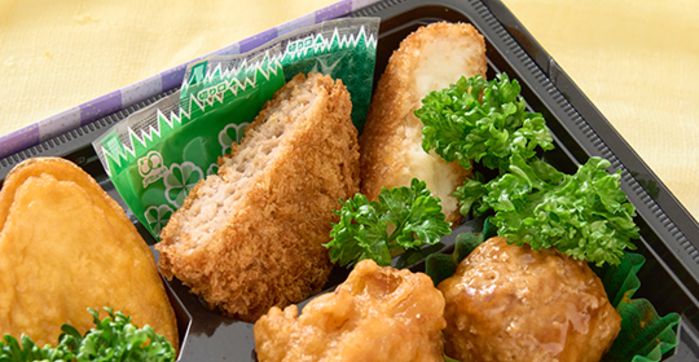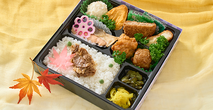 稲舟 (いなふね) 900円(税込) 注文数 個 カートへ カートに入れる 秋たけなわをイメージしました。ボリュームある和洋惣菜をバラエティ豊かに盛り込んだお弁当。 内容 白飯・生姜香る牛肉しぐれ煮・グリンピース・プレーンオムレツ・ポテトサラダ・ジューシーメンチ・グラタンコロッケ・サーモン塩焼き・花蓮根・肉団子・鶏もも唐揚げ ・青かっぱ・千切沢庵