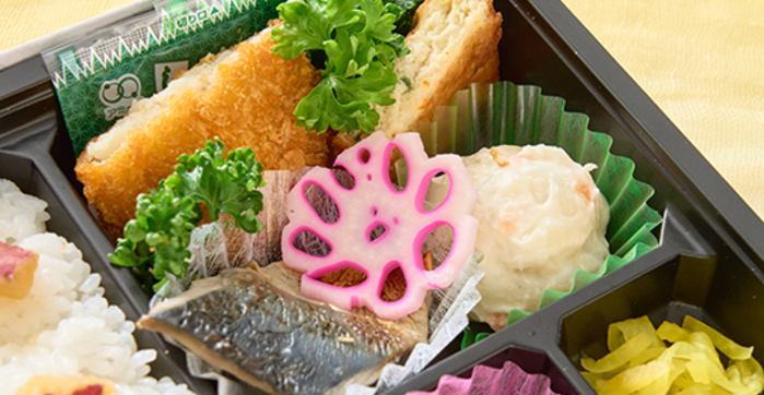 星の雫 (ほしのしずく) 750円(税込) 注文数 個 カートへ カートに入れる 秋の夜空に輝く星をイメージしました。揚げ物を控えた旬食材を彩り美しく仕上げました。体にやさしいお弁当です。 内容 白飯・錦糸玉子・紅あずま・グリンピース・海鮮豆腐ステーキ・野菜コロッケ・鯖塩焼き・花蓮根・ポテトサラダ・桜漬・沢庵