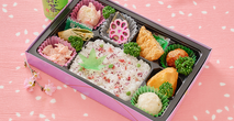 八重霞 (やえがすみ) 1,000円(税込) 注文数 個 カートへ カートに入れる 春たけなわの穏やかな風景をイメージしました。あっさりとした梅ゆかりをトッピングしたご飯と和洋中のバラエティ豊かな惣菜の組み合わせが楽しいお弁当。 内容 白飯・梅ゆかり・グリンピース・たけのこ梅サラダ・大葉春巻き・ピンク焼売・鯖塩焼き・花蓮根・チーズ入りメンチ・黒酢あんかけ肉団子・プレーンオムレツ・ポテトサラダ・お茶(缶)