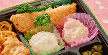 春曙 (はるあけぼの) 800円(税込) 注文数 個 カートへ カートに入れる ボリュームたっぷり春のパワフル弁当。和風ご飯と味わいの異なる多種の惣菜をバラエティ豊かに盛り込みました。 内容 白飯・梅ゆかり・グリンピース・スパゲティナポリタン・鶏もも唐揚げ・チーズ入りメンチ・クリーミーコロッケ・ポテトサラダ・ピンク焼売・桜漬・胡瓜漬