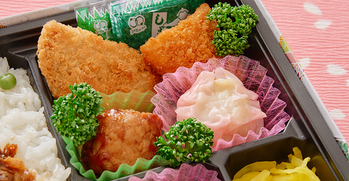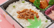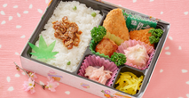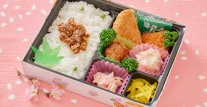 春しぐれ (はるしぐれ) 750円(税込) 注文数 個 カートへ カートに入れる ほのぼのとした春をイメージしたお弁当。コンパクトな箱の中に個性豊かな惣菜とボリュームあるご飯を盛り込みました。 内容 白飯・牛肉しぐれ煮・グリンピース・チーズ入りメンチ・ハムポテトフライ・黒酢あんかけ肉団子・ピンク焼売・たけのこ梅サラダ・千切沢庵